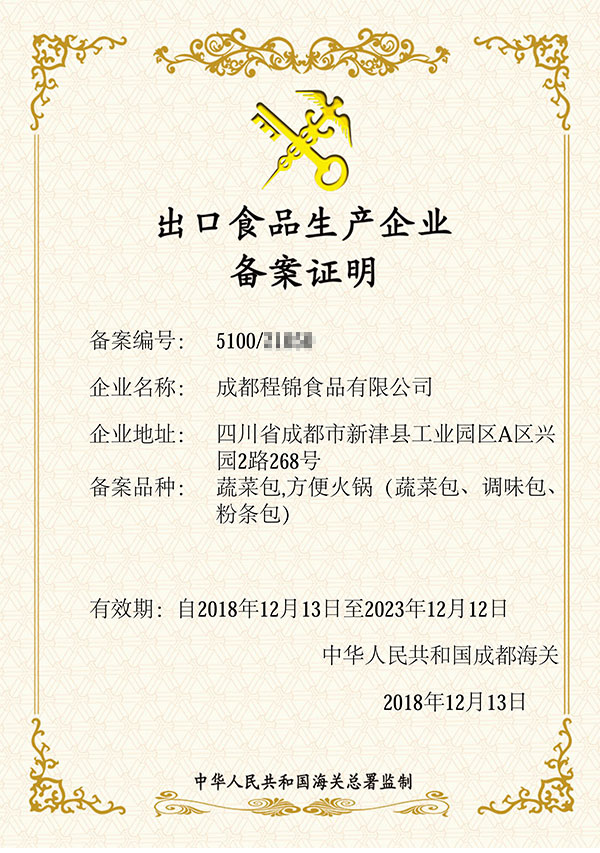成都程锦食品有限公司位于成都市新津工业园区,公司占地50余亩,车间使用面积2万余平方米。是一家专业生产方便自热火锅蔬菜包、蔬菜即食休闲产品以及方便自热火锅全套产品组装的企业。公司生产的火锅蔬菜成型好、口感脆、无酸味、颜色正常、质量稳定……工厂拥有数条先进的方便自热火锅组装线,日生产量可达上万箱;拥有一批完备的配套产品生产厂家,让您不费太多精力就可以在我们这里全程贴牌定制。目前与我们合作的品牌有“巴蜀懒人”“蜀大侠”“大宽小窄”“似水柔情”等。“巴蜀懒人”作为行业领军品牌从一开始就和我公司合作,形成了长期稳定的战略合作伙伴关系。