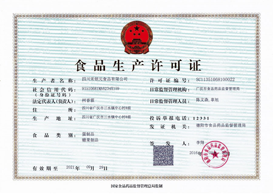祝贺四川禾铠元食品有限公司获得食品生产许可证