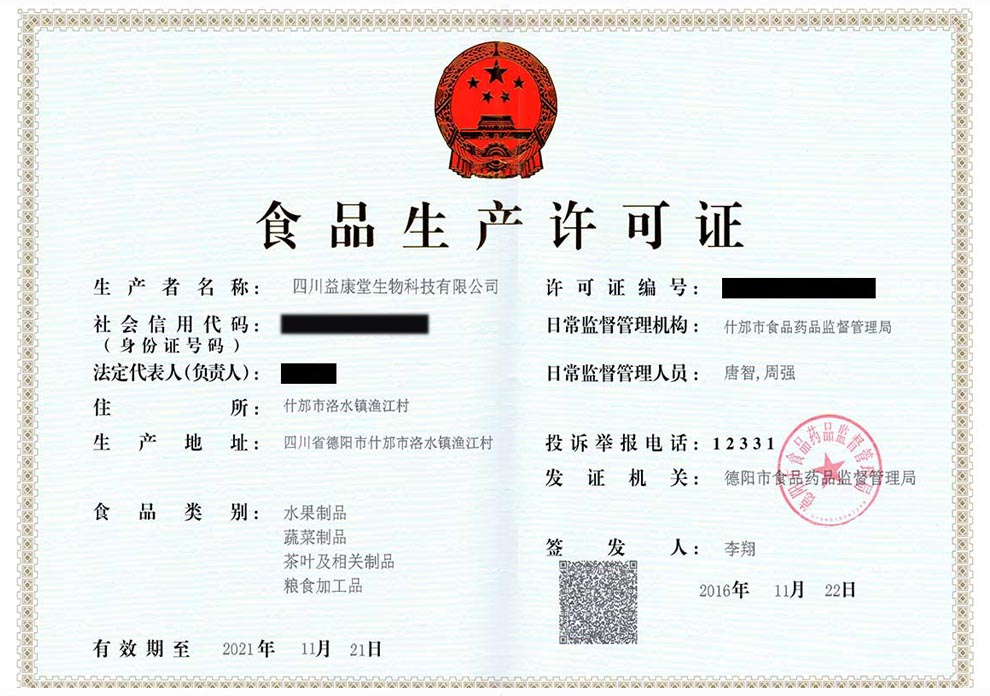 食品生产许可证