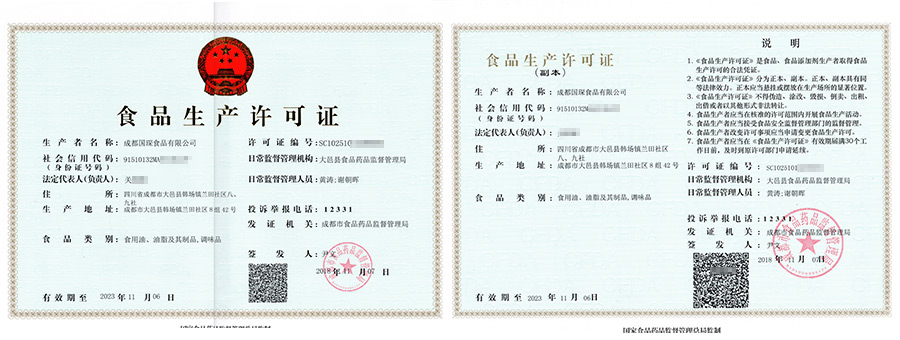 华盛兴邦食品生产许可证案例介绍,成都国琛食品有限公司食品生产许可证证书展示。咨询热线:181-0821-4725
