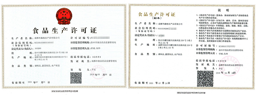 华盛兴邦蔬菜生产许可证案例介绍,成都市森海农产品有限公司生产许可证证书展示,咨询热线:181-0821-4725