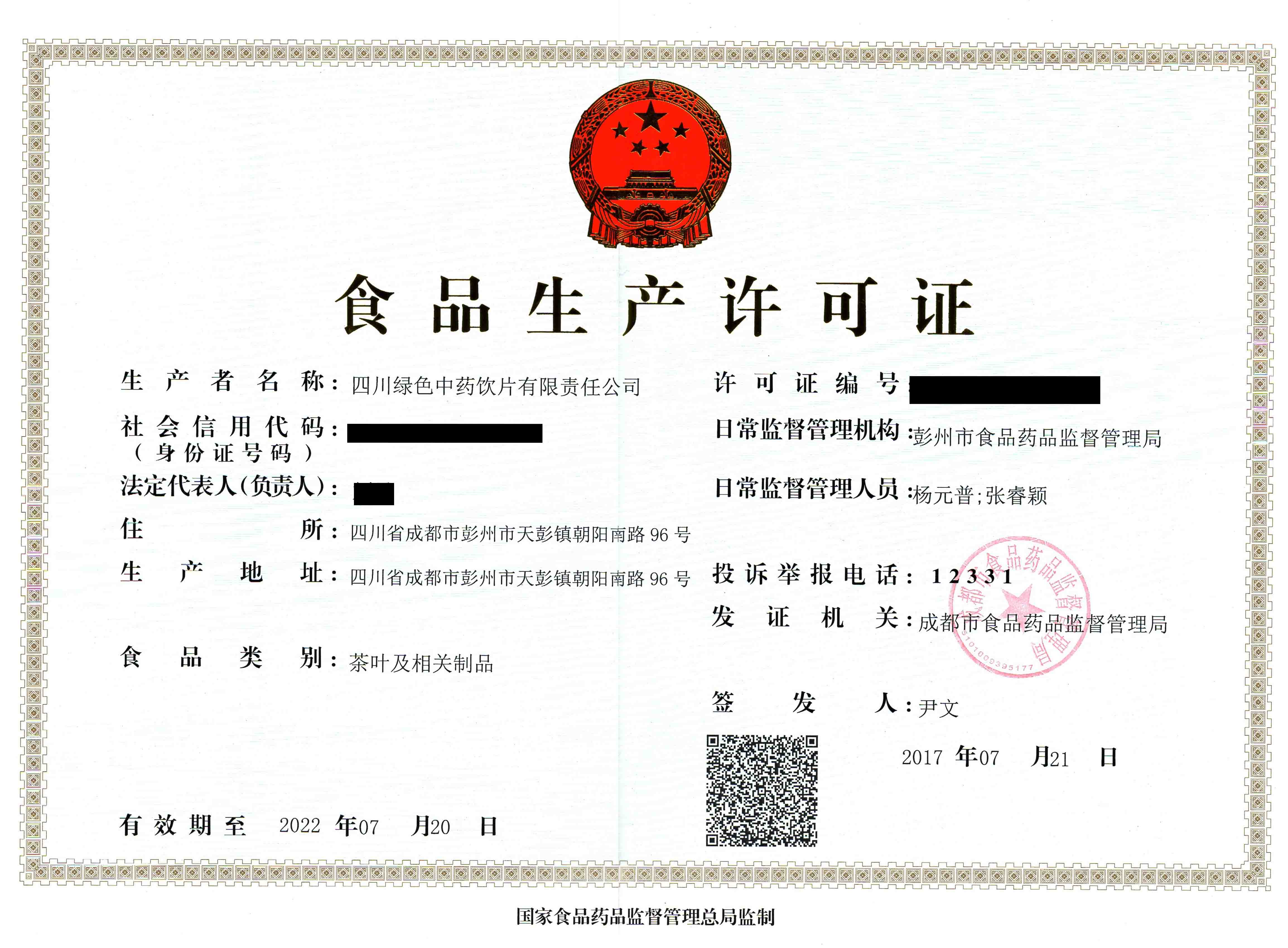 四川绿色中药饮片有限责任公司食品生产许可证服务