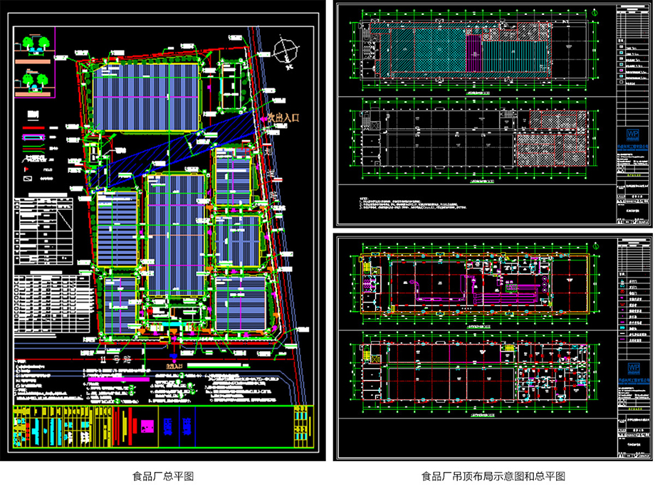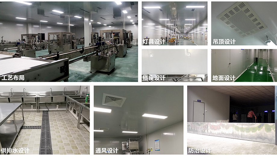 食品厂设计包括:工艺布局(车间设计)、供排水设计、灯具(照明)设计、插座设计、吊顶设计、地面设计、通风设计、防治设计