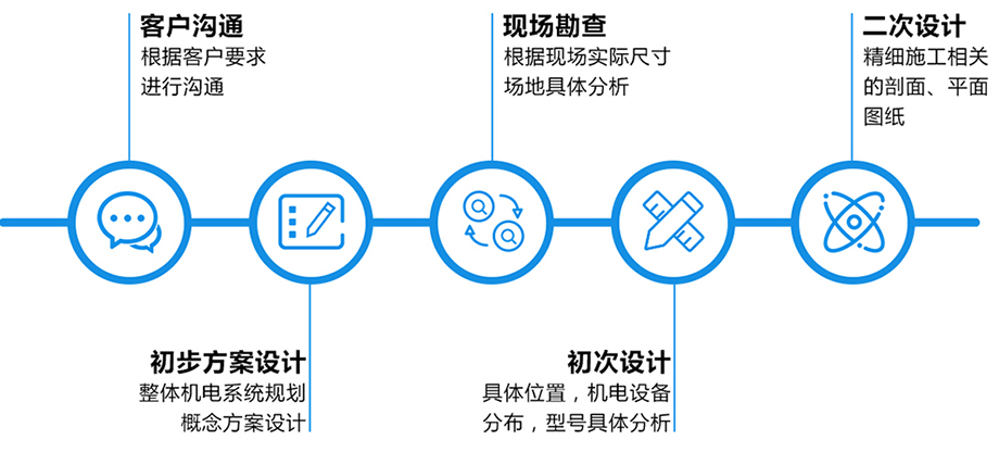 初次设计包括:机电方案设计、机电初步设计、机电施工图设计、施工调试服务