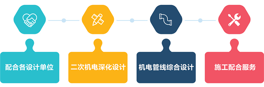 二次设计包括:配合各设计单位、二次机电深化设计、机电管线综合设计、施工配合服务