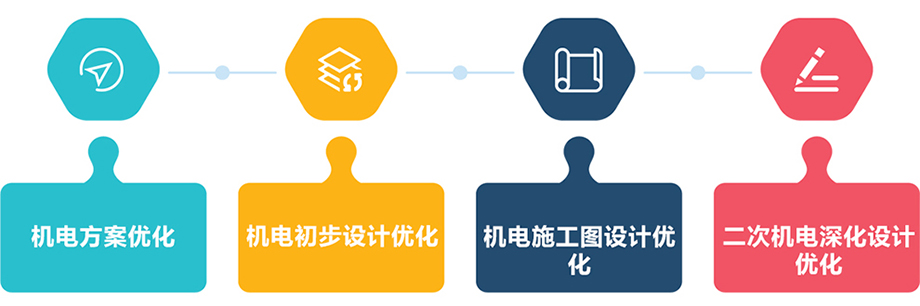 优化设计包括:机电方案优化、机电初步设计优化、机电施工图设计优化、二次机电深化设计优化