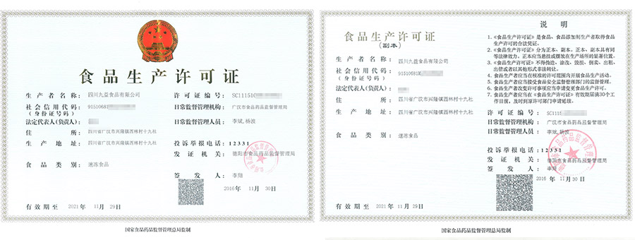 华盛兴邦食品生产许可证案例介绍,四川九益食品有限公司食品生产许可证展示