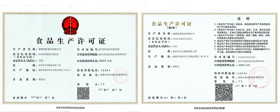 华盛兴邦食品生产许可证案例介绍,成都欣胜食品有限公司生产许可证展示
