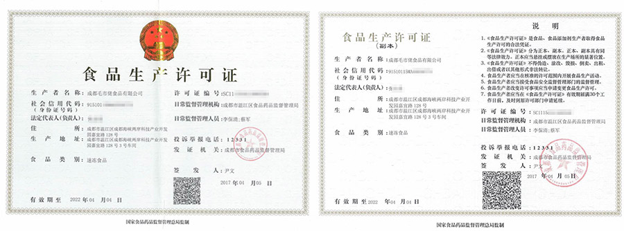 华盛兴邦食品生产许可证案例介绍,成都毛市佬食品有限公司食品生产许可证证书展示