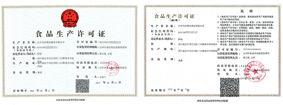 华盛兴邦生产许可证案例介绍,巴中市沙窝河酒业有限公司生产许可证展示。咨询热线:181-0821-4725