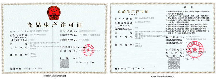 华盛兴邦食品生产许可证案例介绍,四川么么巴食品有限公司食品生产许可证展示