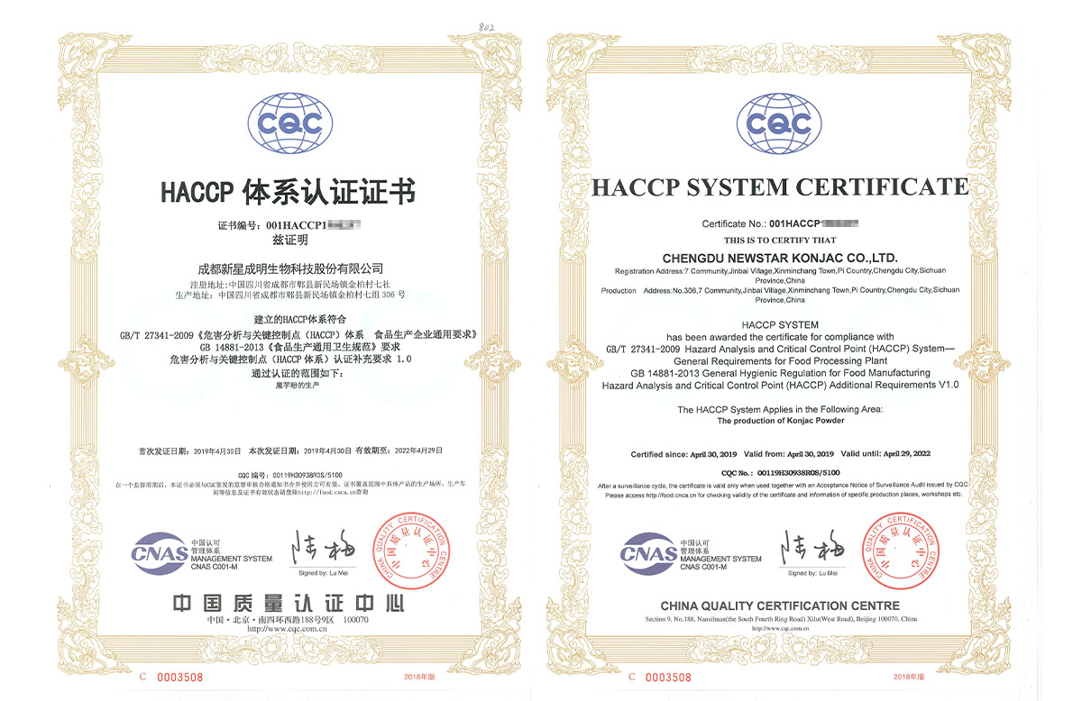 华盛兴邦HACCP体系管理证书案例介绍,成都新星成明生物科技股份有限公司体系管理证书展示。