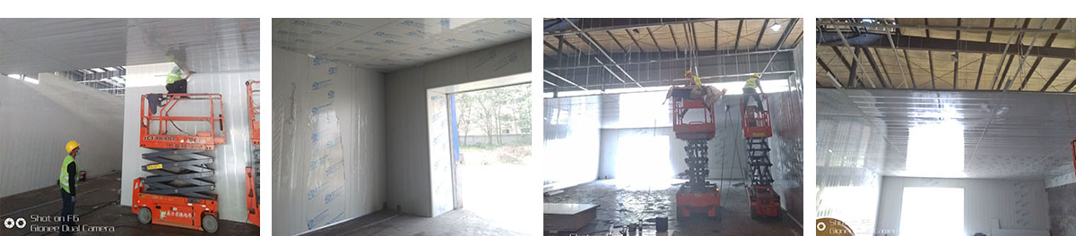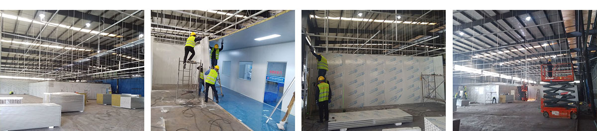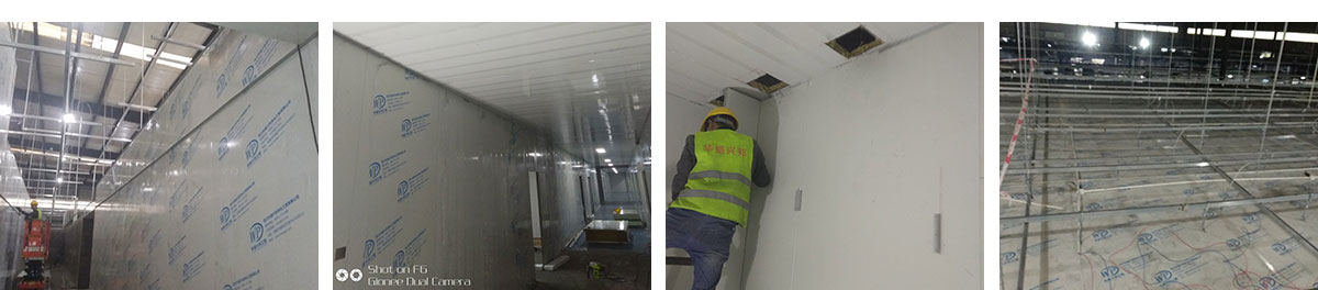 2020-4-9四川妙雨医疗用品有限责任公司口罩厂二期施工现场,净化墙板吊装