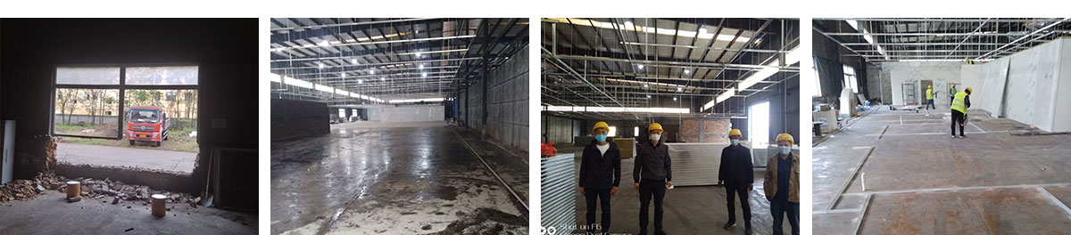 2020-4-13四川妙雨医疗用品有限责任公司口罩厂二期施工现场,车间吊筋施工,墙板安装