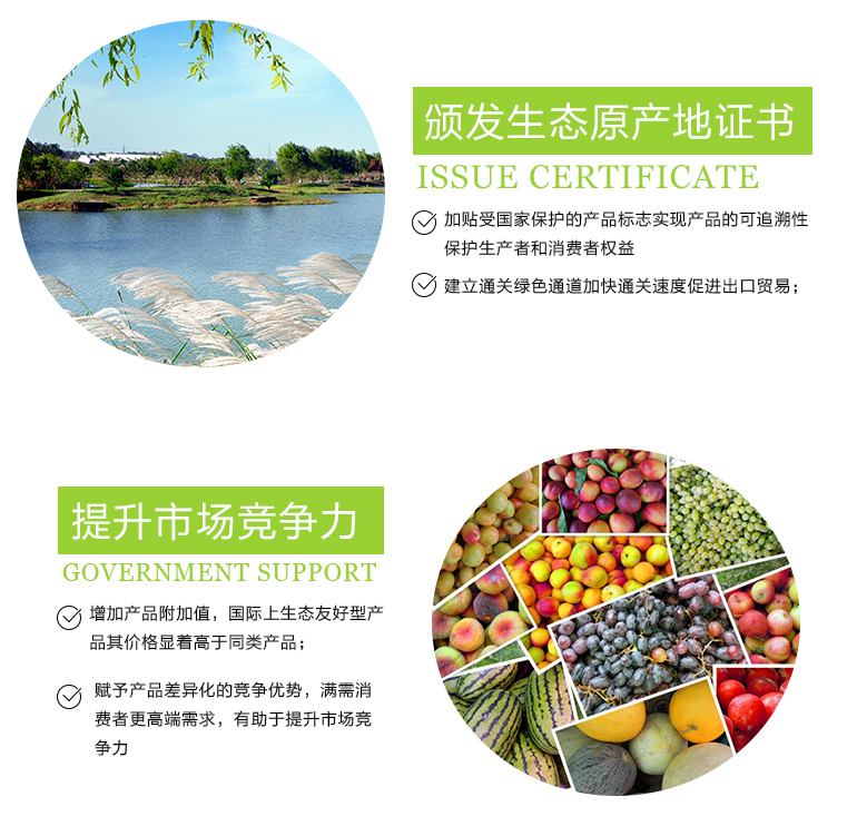 颁发生态原产地证书加贴受国家保护的产品标志实现产品的可追溯性保护生产者和消费者权益 建立通关绿色通道加快通关速度促进出口贸易;