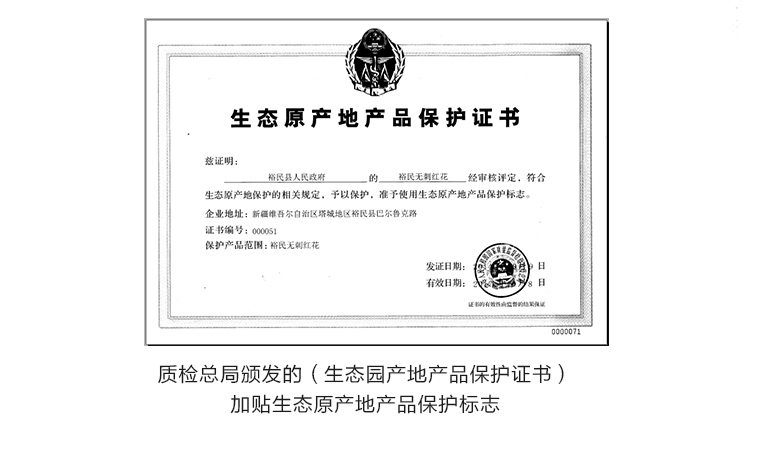 4.对达到(生态原产地产品保护证评定通则),相关标准及技术规范要求的由国家质监总局颁发(生态原产地产品保护证书),证书有效期为3年,授权使用生态原产地产品保护标志。