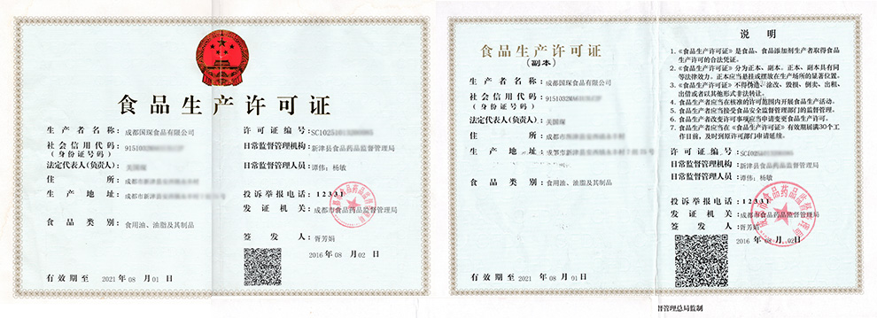 华盛兴邦生产许可证案例介绍,成都国琛食品有限公司食品生产许可证展示。咨询热线:181-0821-4725