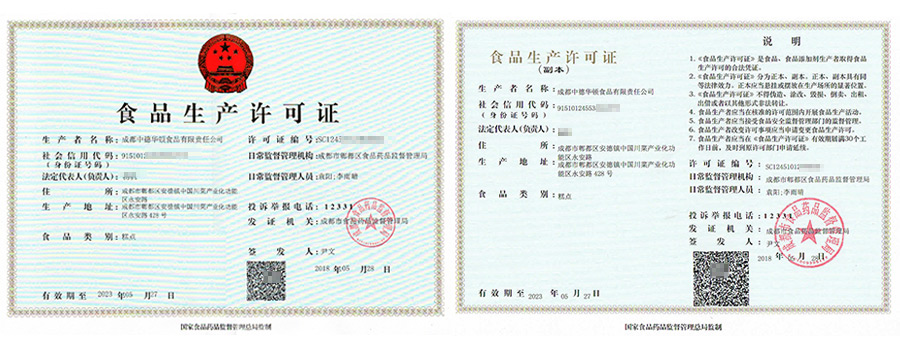 华盛兴邦食品生产许可证案例介绍,成都中德华顿食品有限责任公司生产许可证展示。咨询热线:181-0821-4725