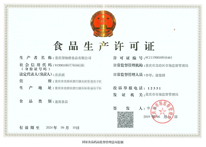华盛兴邦承接重庆望仙桥食品有限公司生产许可证办理,生产许可证办理咨询热线:181-0821-4725
