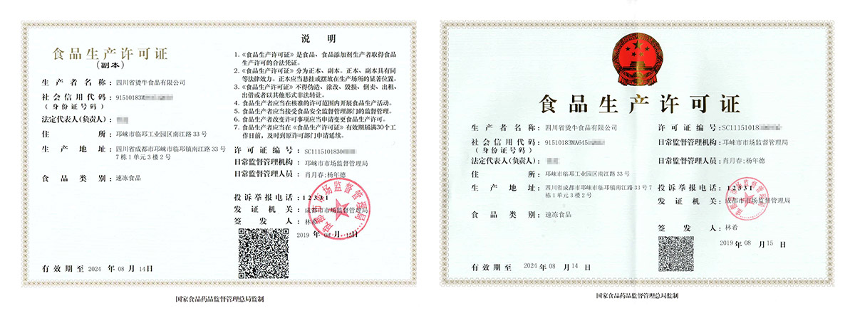 华盛兴邦食品生产许可证案例介绍,四川烫牛食品有限公司食品生产许可证案例展示。本次申报产品速冻食品。