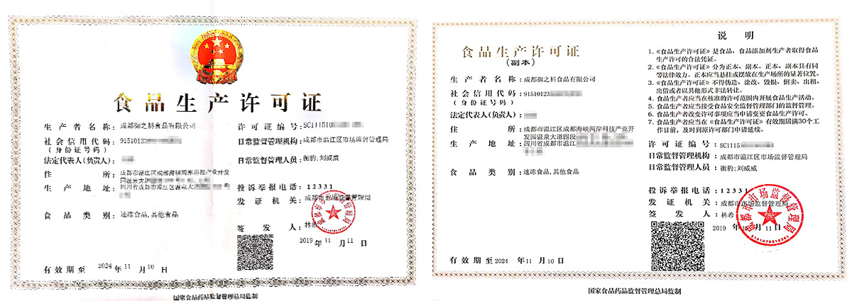 华盛兴邦咨询生产许可证案例展示,成都御之料食品有限公司本次生产许可证申报产品速冻食品和其他食品。该公司主要生产饭团,酱卤肉制品。