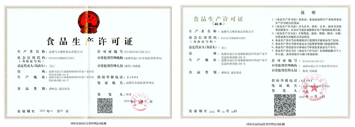 华盛兴邦调味品生产许可证案例:成都马力餐供应食品有限公司